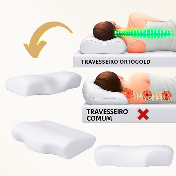Travesseiro Cervical Ergo OrtoGold® alivia as dores no pescoço e costas corrigindo a postura enquanto você dorme.
